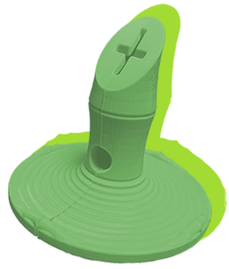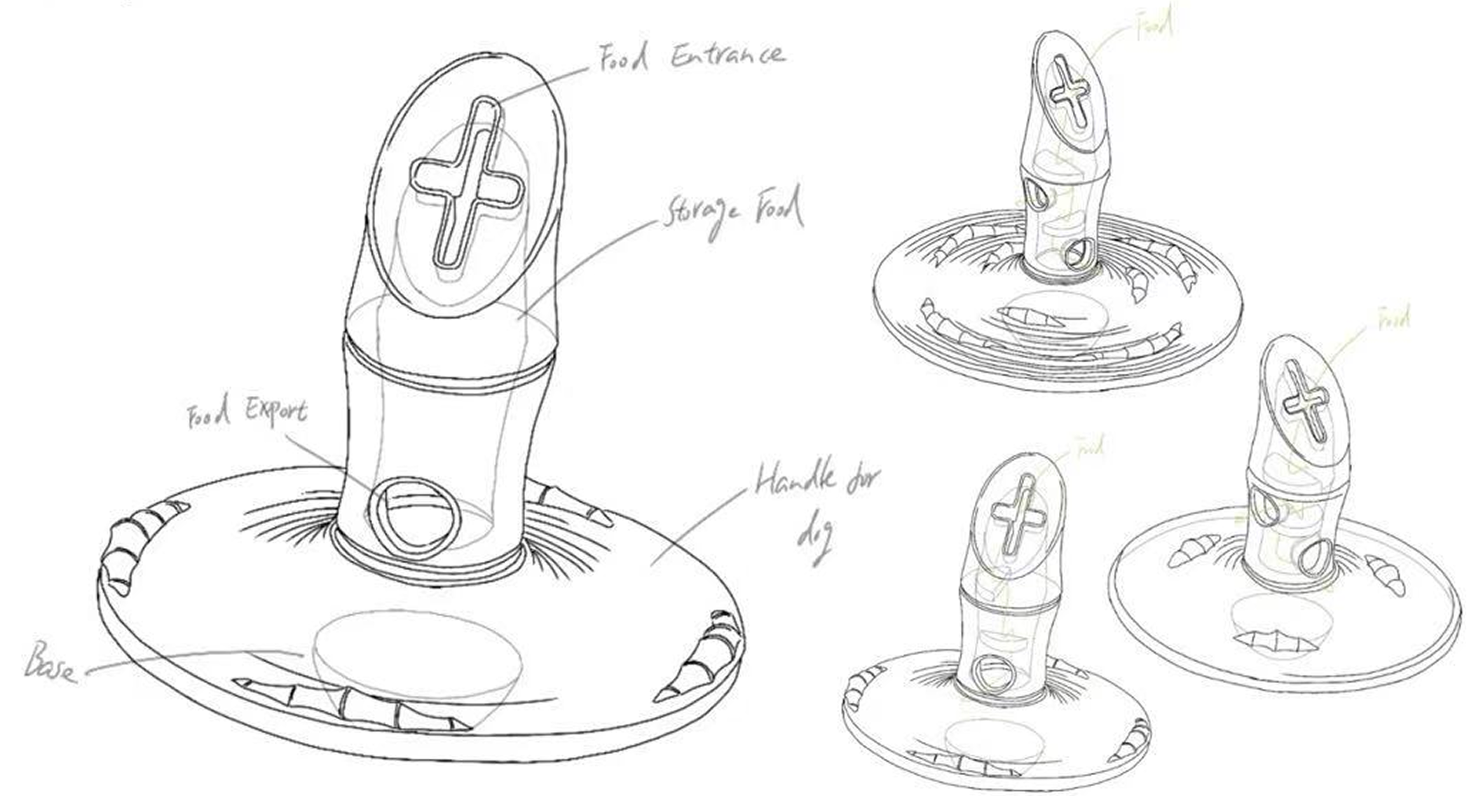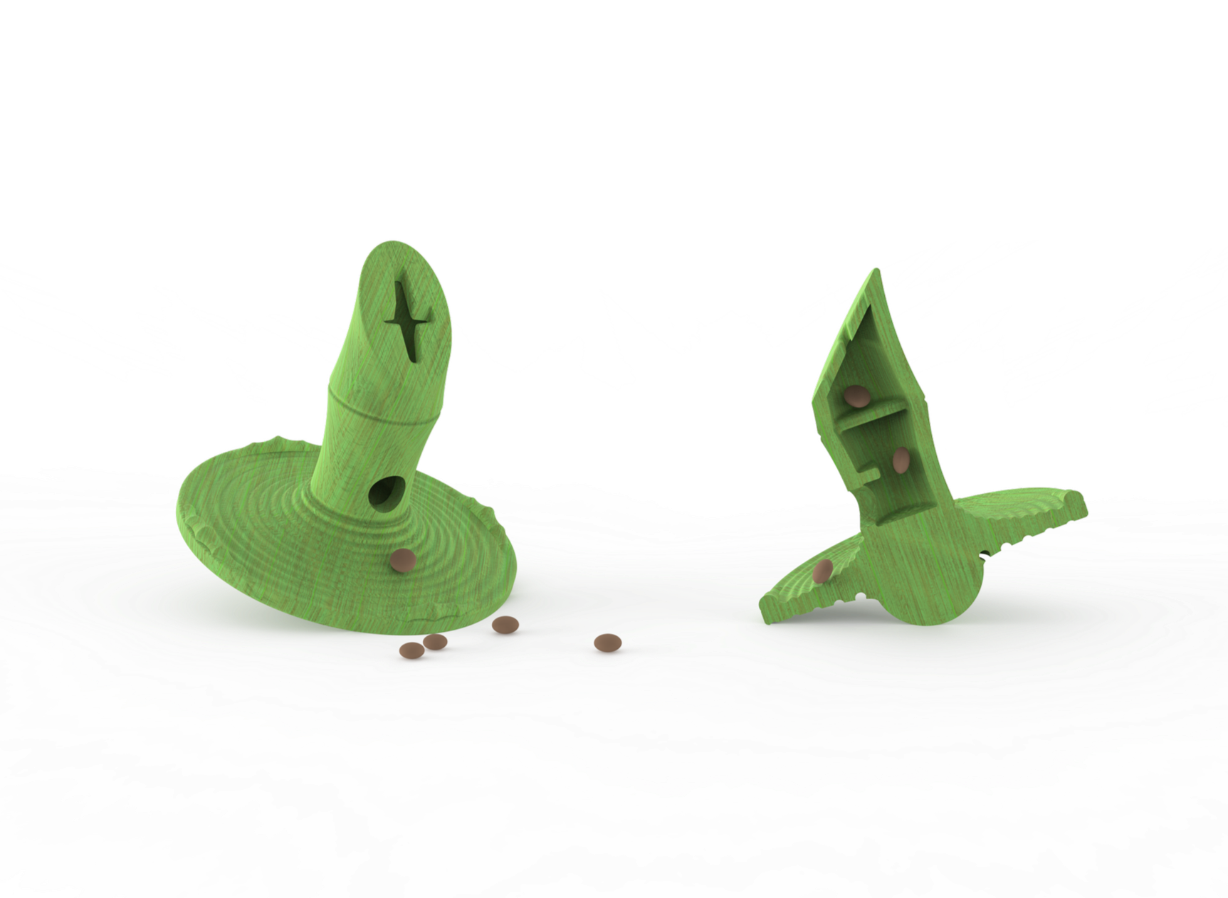 The final prototype is a combination disk and leaky toy with a hemisphere at the bottom that allows the toy to be pushed and rotated. It can be used on both sides, and the toy is reduced in half to fit the dog's paws.