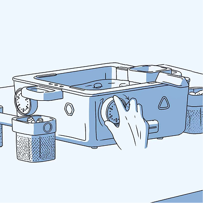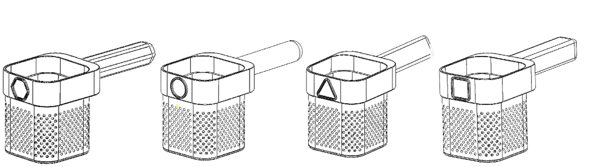 Different shapes of the handle and baskets were 3D printed and tested by users to obtain the final size and shape. The handle of baskets is designed in four shapes: hexagonal, square, circular and triangular for easy distinction.